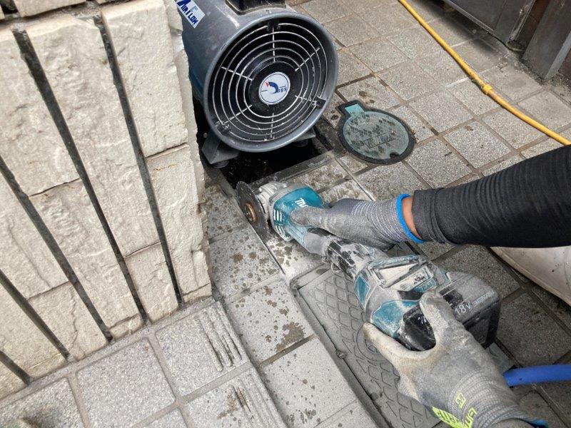 尚、今回はオーナー様とご相談の上、斫った部分はタイルより安価な「モルタルで埋め戻す」という方法を選びましたが、同一のまたは近似のタイルで復旧することも可能ですので、モルタルでは見た目が気になる…という方もご安心ください!