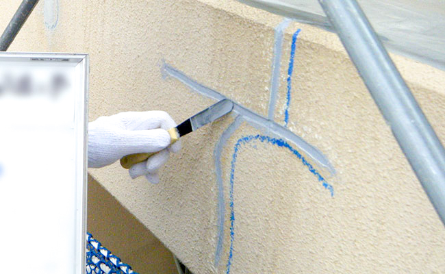 2. Uカット ひび割れ部分に沿って、その幅より広くU字に削ります。