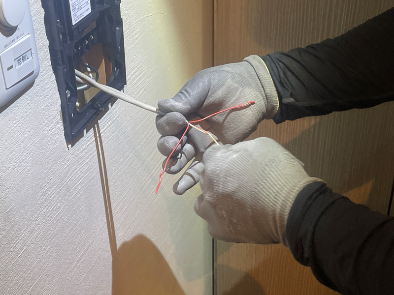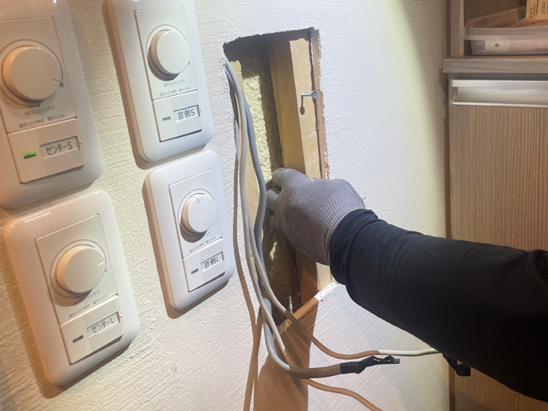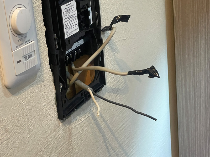 既存の配線を切断し、どの線がどこに接続されていたかを写真で確認用として残します。