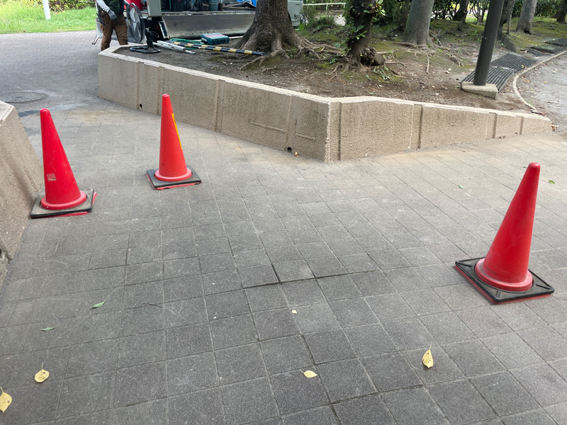 作業中は安全を最優先に考え、カラーコーンや注意喚起の看板を設置して、通行する方が誤って作業エリアに入らないよう対策を行いました。