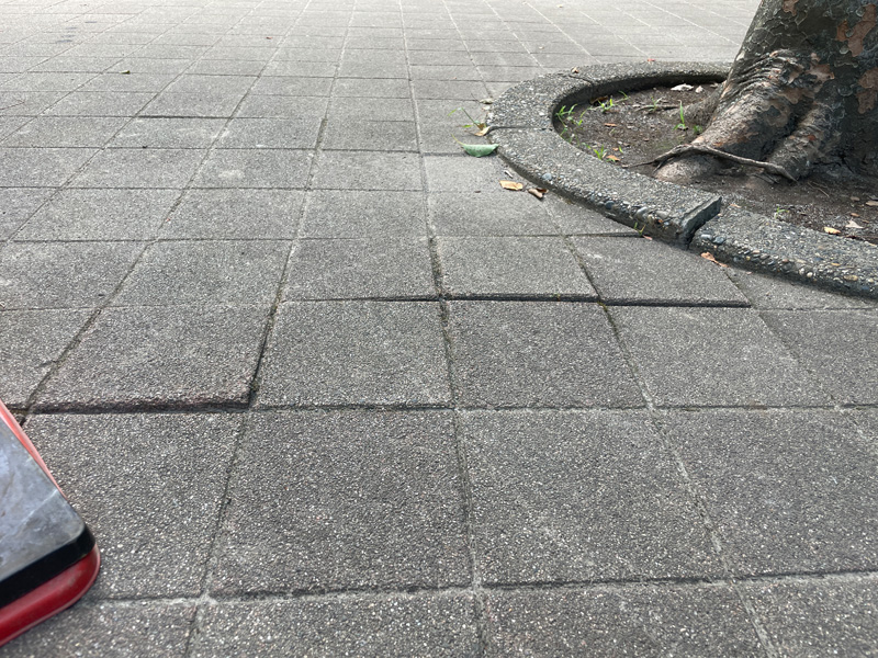見た目もおしゃれで丈夫な舗装ですが、実は木の根や地盤の動きでブロックが浮いてしまうことがあります。
