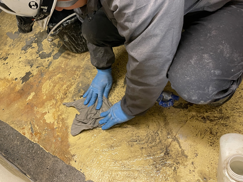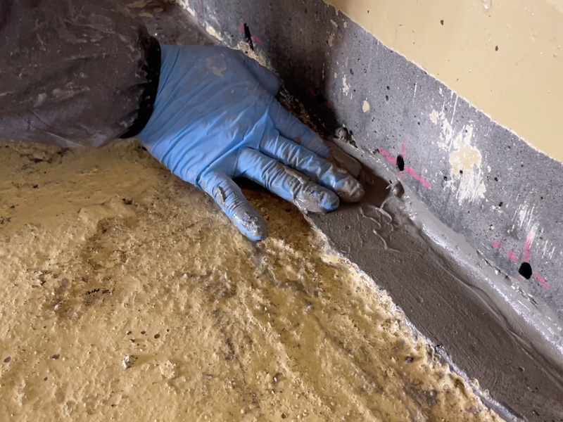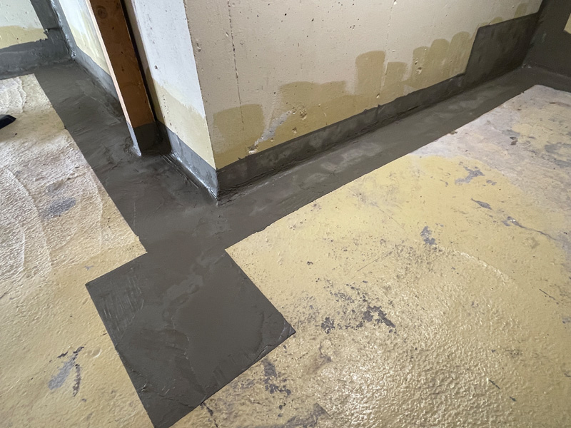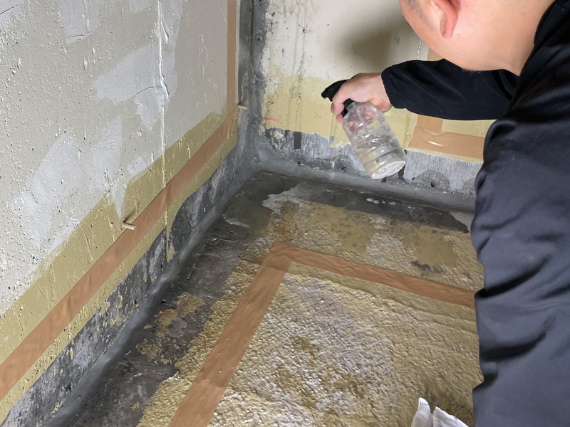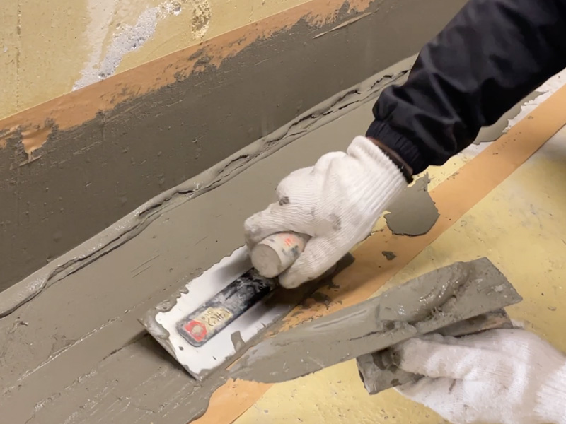 施工前に水養生を行い、コンクリートを湿潤状態にしたうえで、1mm以上の厚みで塗布していきます。