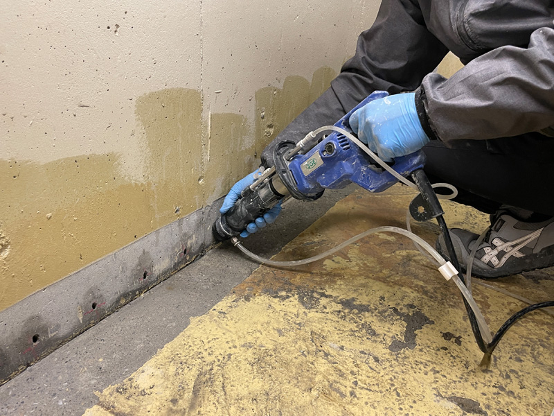 実際の施工では、この樹脂をコンクリート内部に確実に行き渡らせるために、いくつかの工程を経て作業を行います。