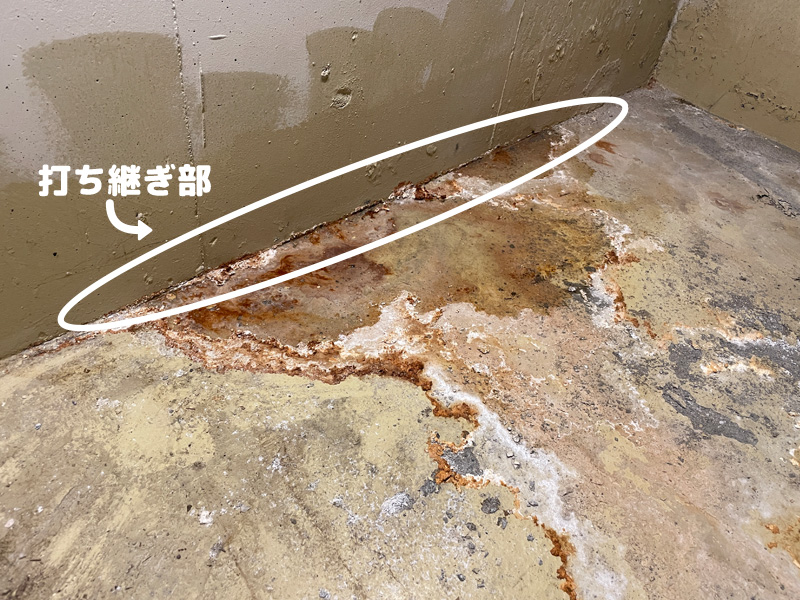 一方で、打ち継ぎ部や床と壁の取り合いは構造的に水が入りやすく、注意が必要なポイントです。
