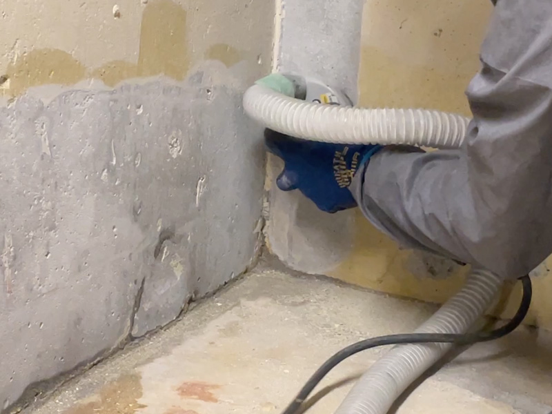 することで、粉塵の飛散を抑えながら施工を行います。