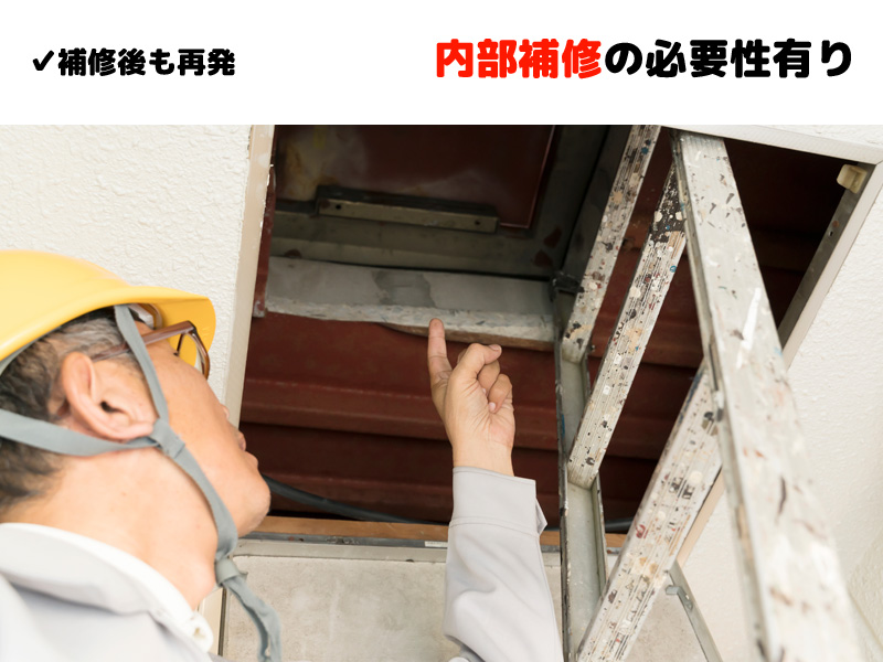 しかし、すでに補修しているにもかかわらず再発している場合は、内部原因を疑う必要があります。