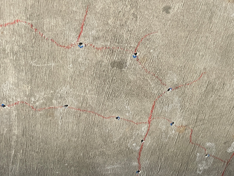 また、この後の穴あけ作業のためのマーキングも行いました。