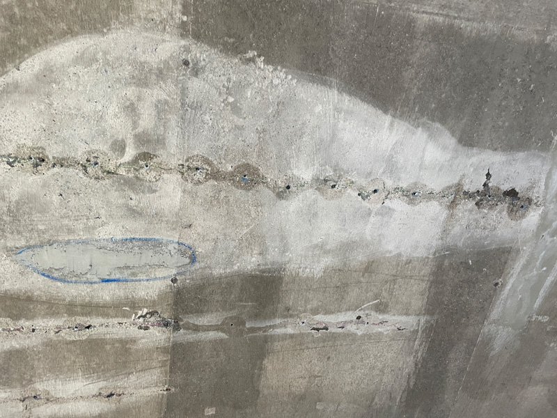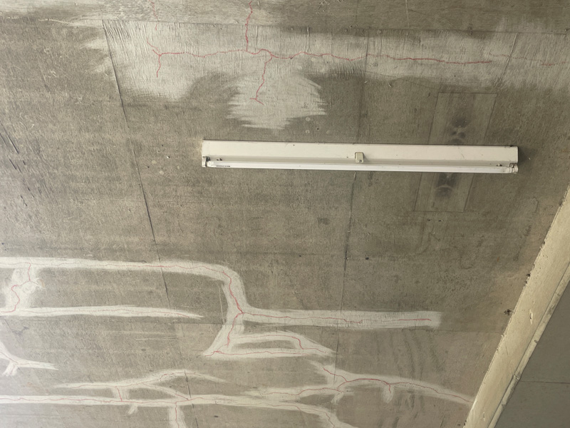 他にも細かいひび割れが見つかり、いつどのひび割れから水が漏れてきてもおかしくない状況です。