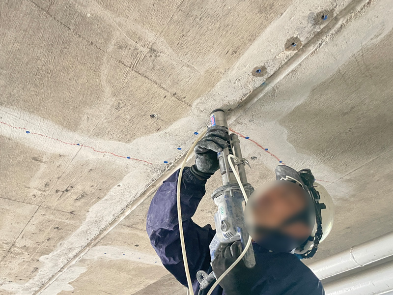 この工程は、IPH樹脂をコンクリート内部の微細なひび割れまで行き渡らせるための通路づくりです!
