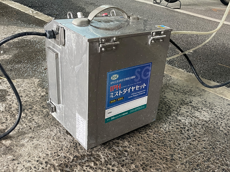 穿孔には専用機材「ミストダイヤセット」を使用しました。