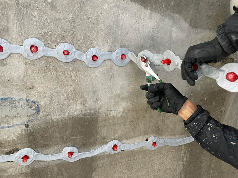 特に漏水量が多い箇所は、10cm間隔までピッチを詰めて対応しました。