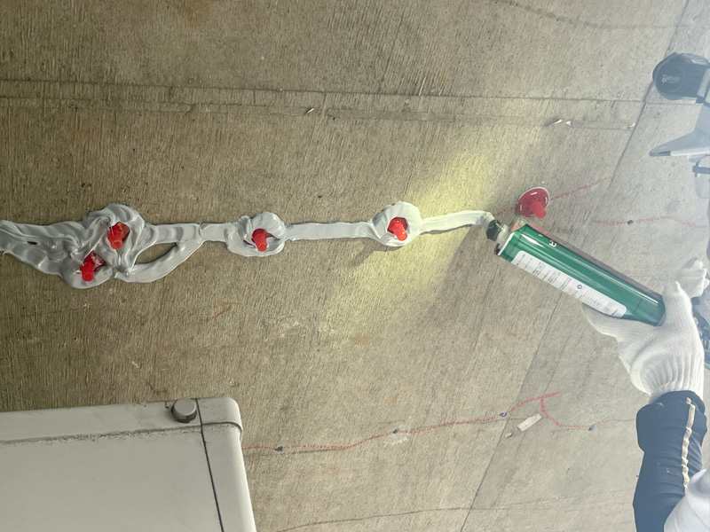 台座を固定する際は、樹脂漏れ防止のためのシーリング材を併用して密閉性を確保します。
