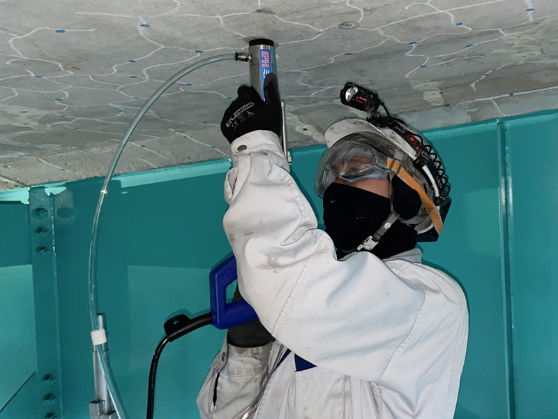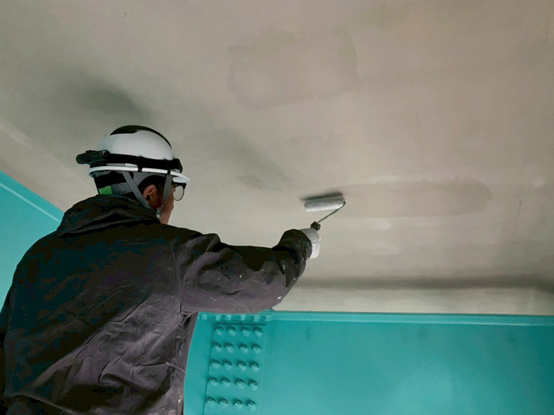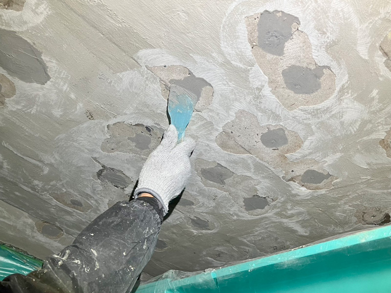 今回は細かなひび割れが多いため、床版全体に目止めを実施しています。