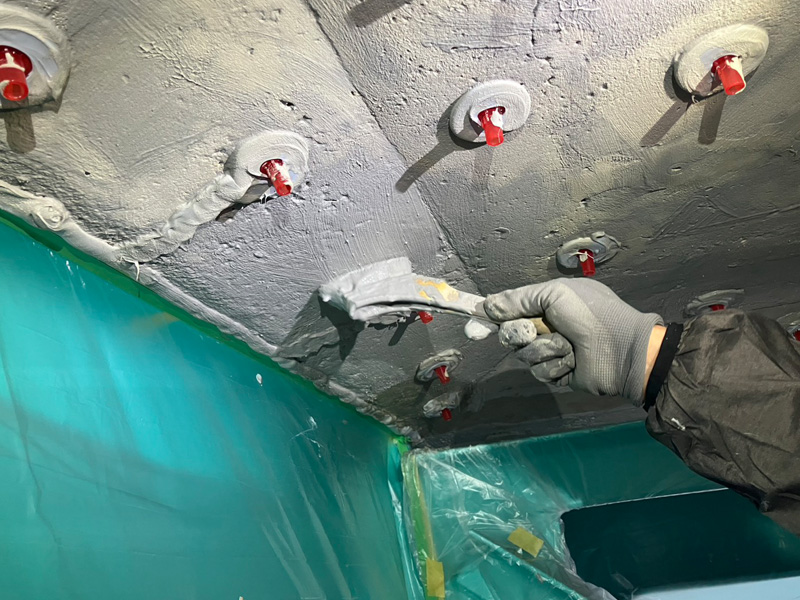 これは、樹脂漏れを防ぎ、コンクリート内部へ確実に樹脂を充填するための重要な工程です。