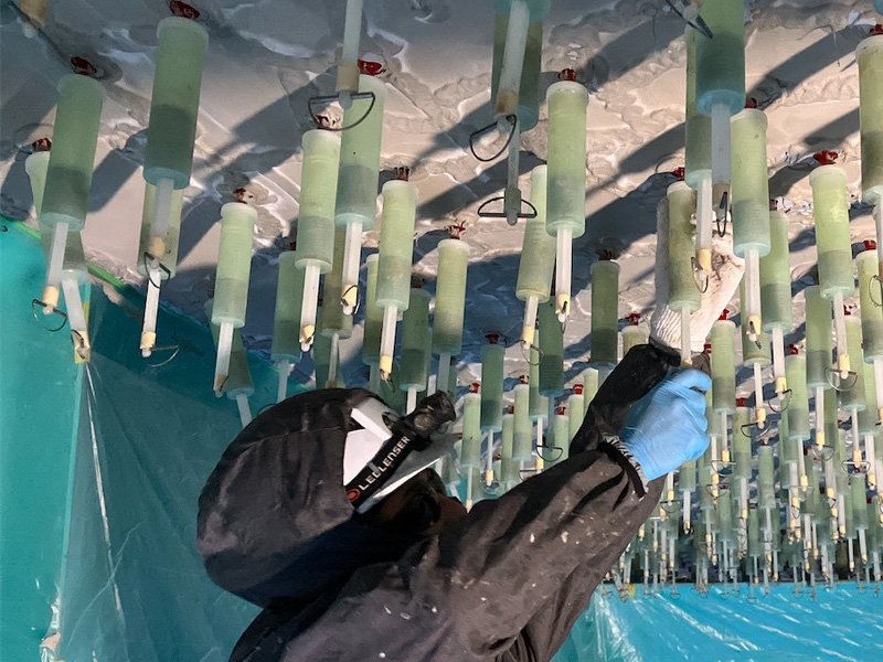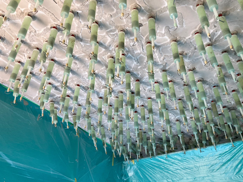 注入完了後、台座を撤去し、穿孔部をモルタルで丁寧に穴埋めします。
