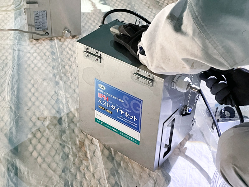 ミストダイヤセットは、穿孔時に発生する粉じんを抑えながら作業できる機材で、周囲への影響を最小限に抑えつつ、安定した施工が可能です。