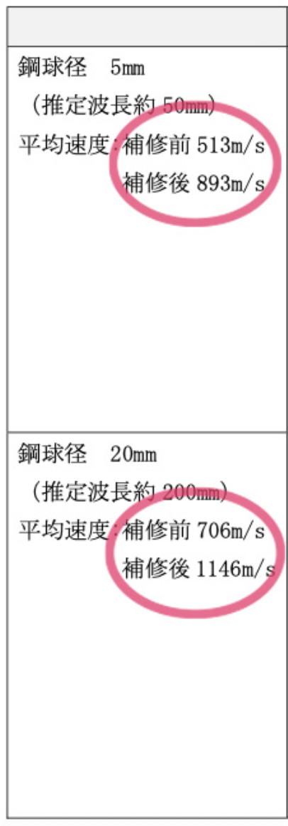 今回は5mmおよび20mmの鉄球を用いて、内部のひび割れや空隙の深さを把握しました。