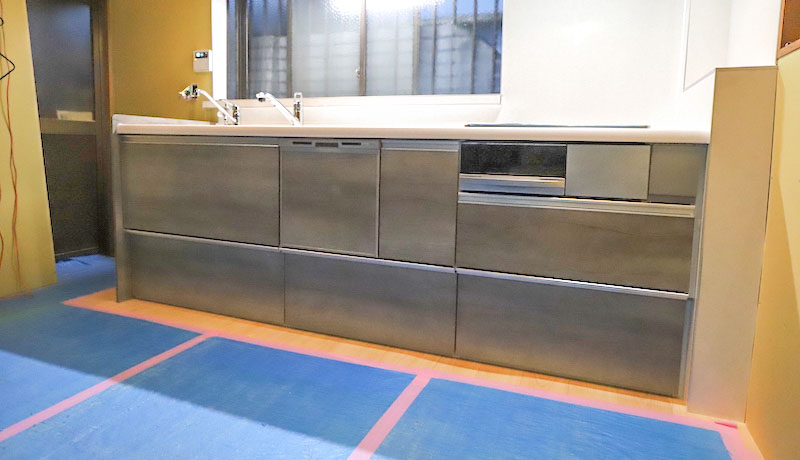 以前の物と比較すると、全体的な大きさに変化はありませんが、新たに食洗機を導入したり、コンロからIHに変えたりと、部分的に機能を変えてリニューアルされています。