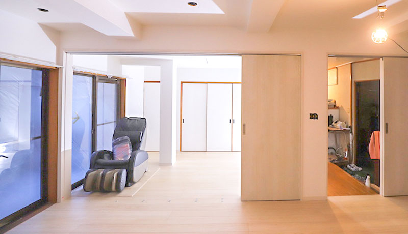 こちらのブログ記事では、和室のリビングを洋室へ改装し、さらにはリビングに隣接している畳の間と一体化させて、開放的な空間に仕上げる、というリノベーション工事についてご紹介しています。