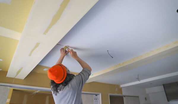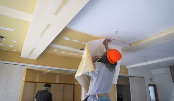 下地組みが完了したら、石膏ボードと呼ばれる建築材料を用いて、新しい壁と天井を作っていきます。