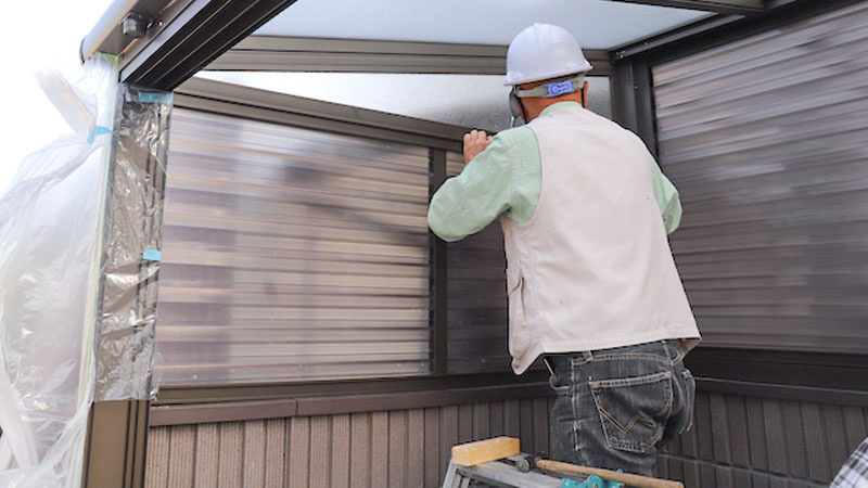 同じ流れで背面や左側面にもプラスチックボードを取り付けていきます。
