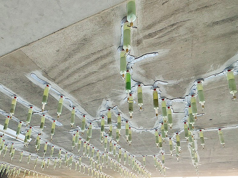 IPH工法とは、コンクリートの内部(Inside)に樹脂を注入し、加圧状態(Pressure)で硬化(Hardening)させる工法です。