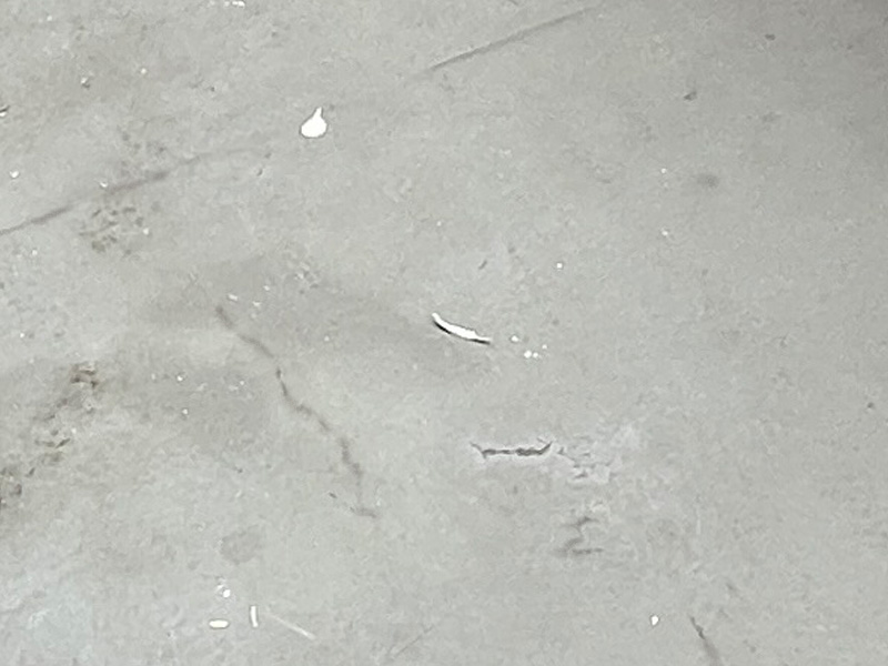 内側に見えるオレンジ色の部分は、過去の工事で使用された接着剤やプライマーの名残です。
