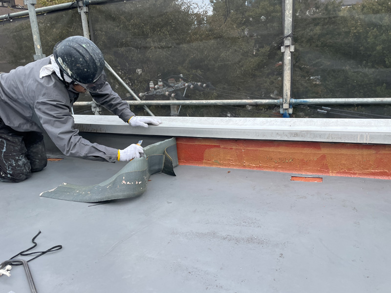立上り部は、紫外線・雨の影響や、端部が多く動きが出やすい事などから劣化が集中しやすく、今回の場合は一度リセットが必要と判断しました。