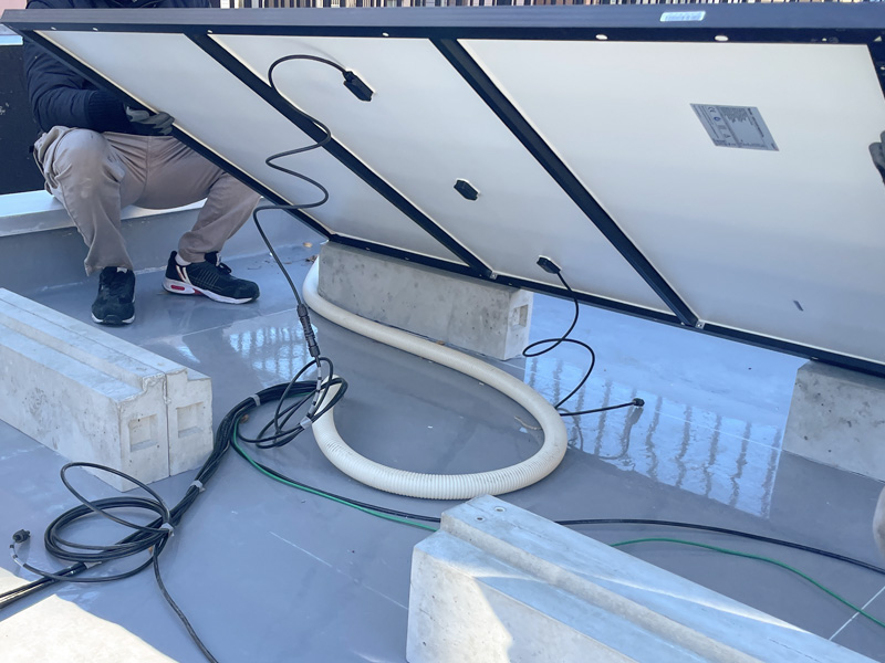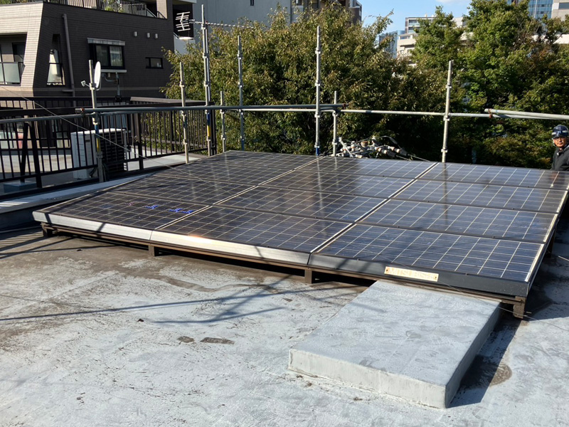 これらの工程を経て防水工事を完了させた後、改めて太陽光パネルの設置へ。