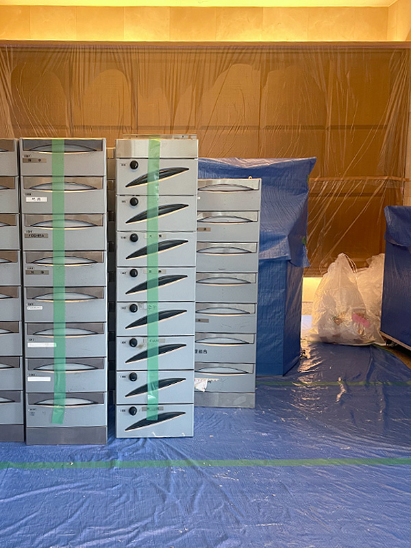 まずは、作業エリアの養生をして、ポストに残っている郵便物を確認・残っているものを取り出していきます。