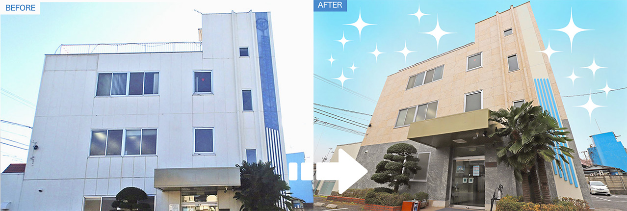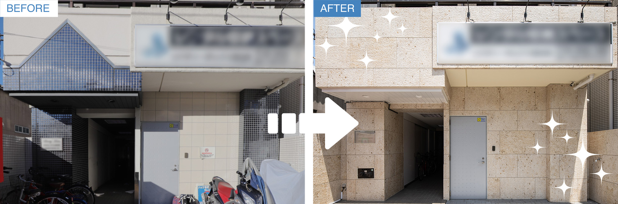 どの建物もまるで新築に生まれ変わったかのように外観の印象が変化していますが、この仕上がりはストーンを使用した建て直しではありません!