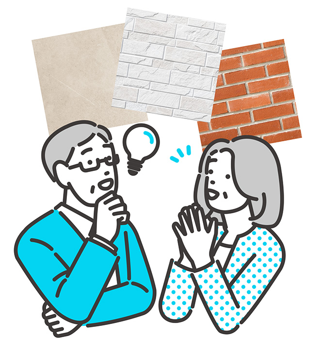塗装かシート工法か、どちらを選ぶかは壁の材質によって決定します。モルタルやコンクリート面には外壁塗装、タイル面にはシート工法が向いていることが多いです。